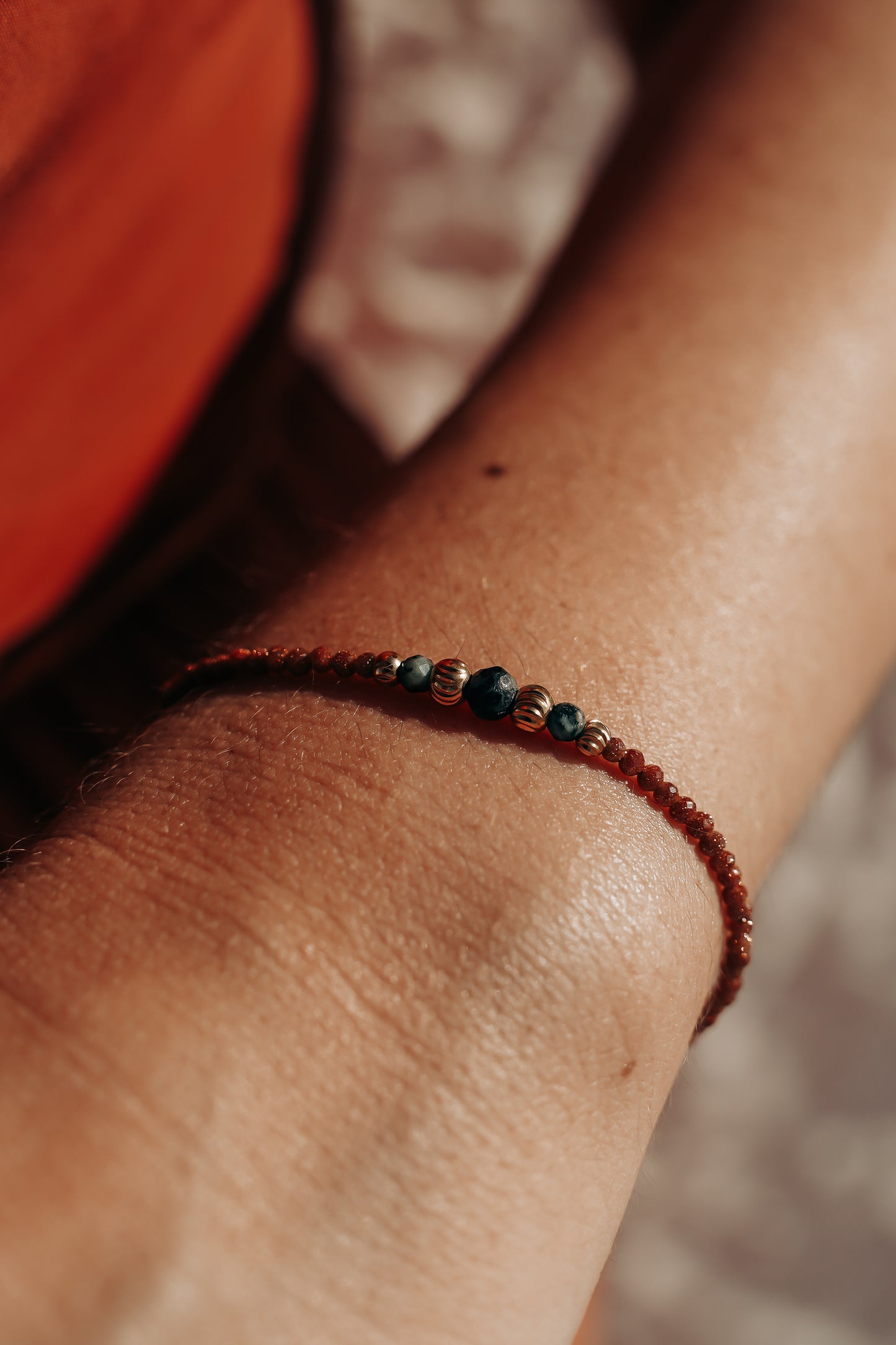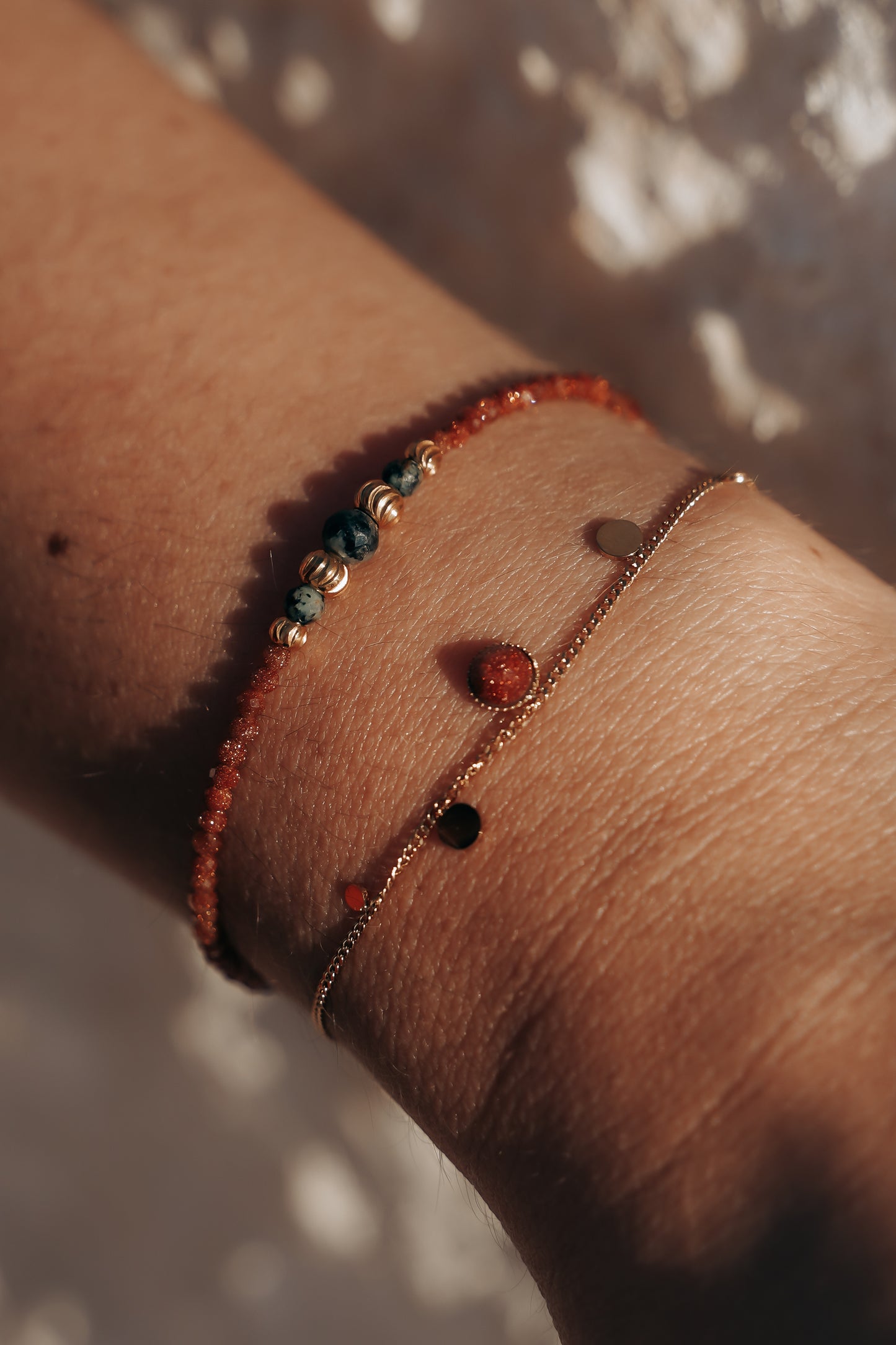 Dakota | Bracelet en acier inoxydable et pierres naturelles | Pierre de sable, turquoise africaine | Doré