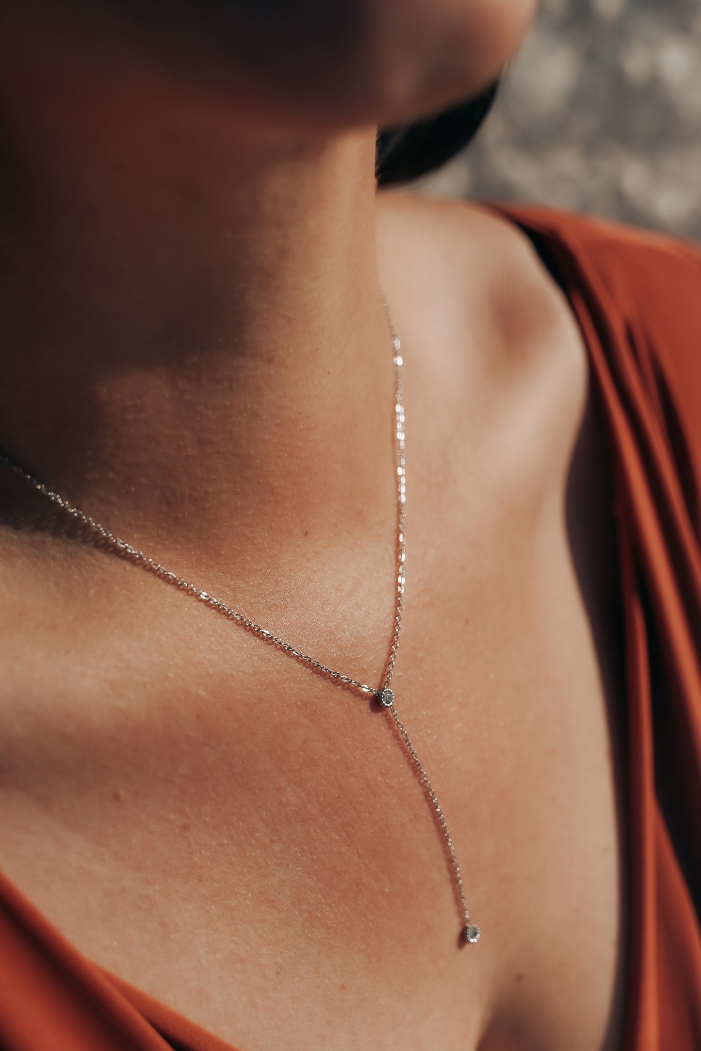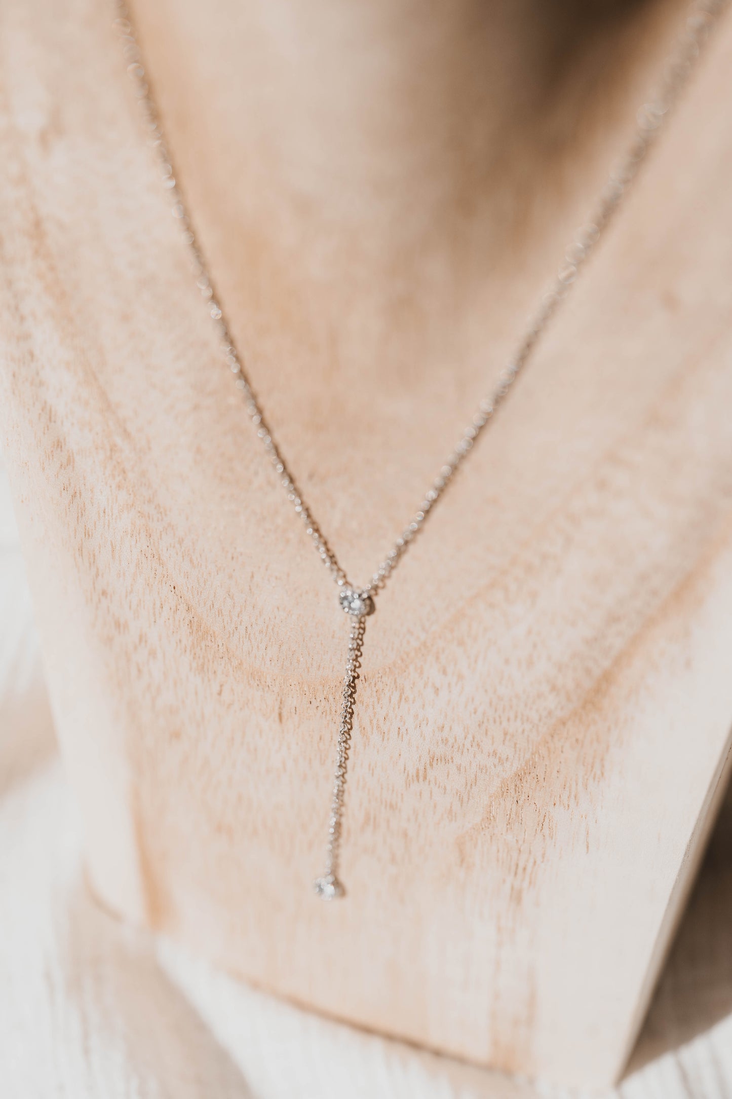 Rhodes | Collier y en acier inoxydable | Oxydes de zirconium argenté | Argenté
