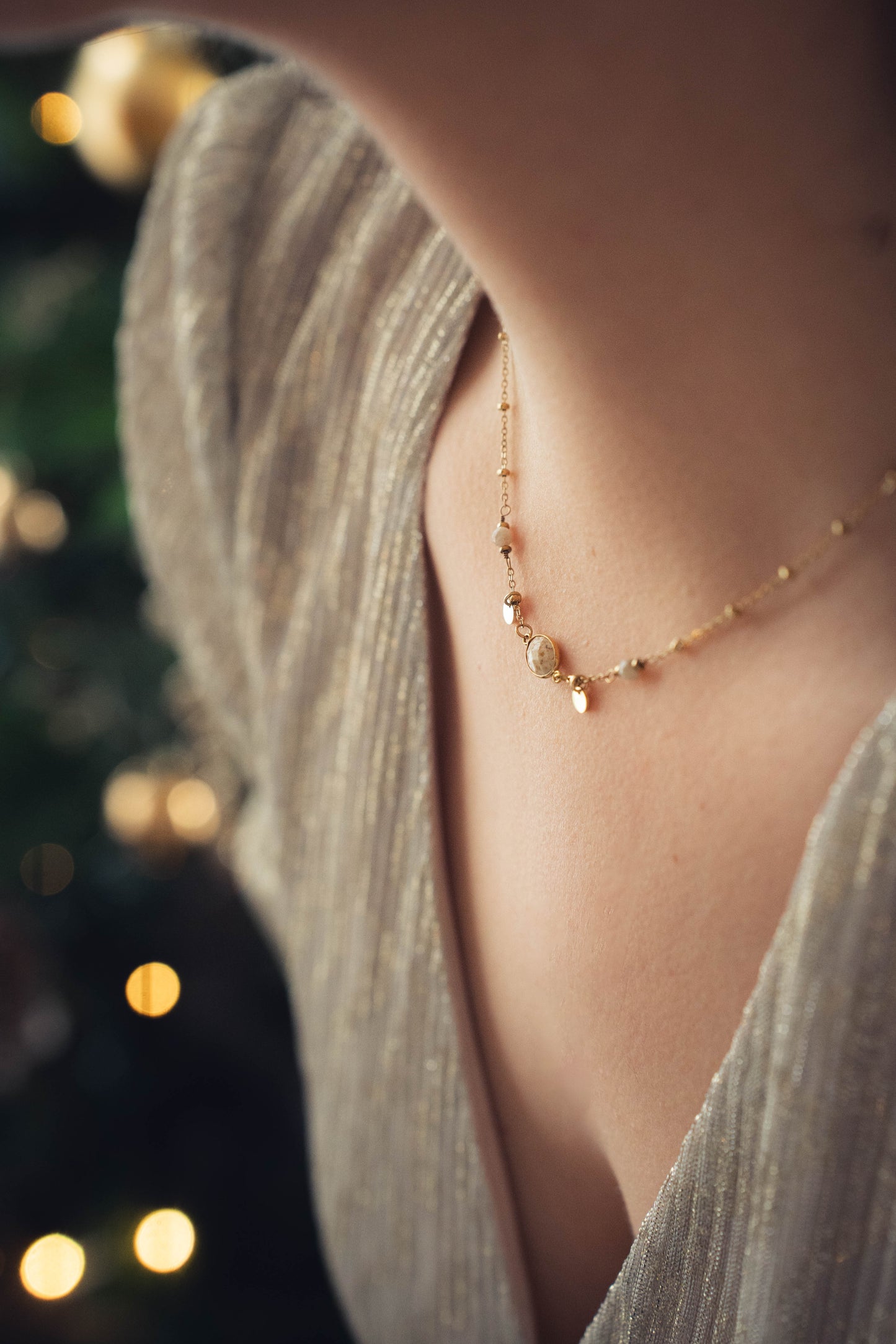 Tulum | Collier en acier inoxydable et pierres naturelles | Jaspe Paysage | Doré