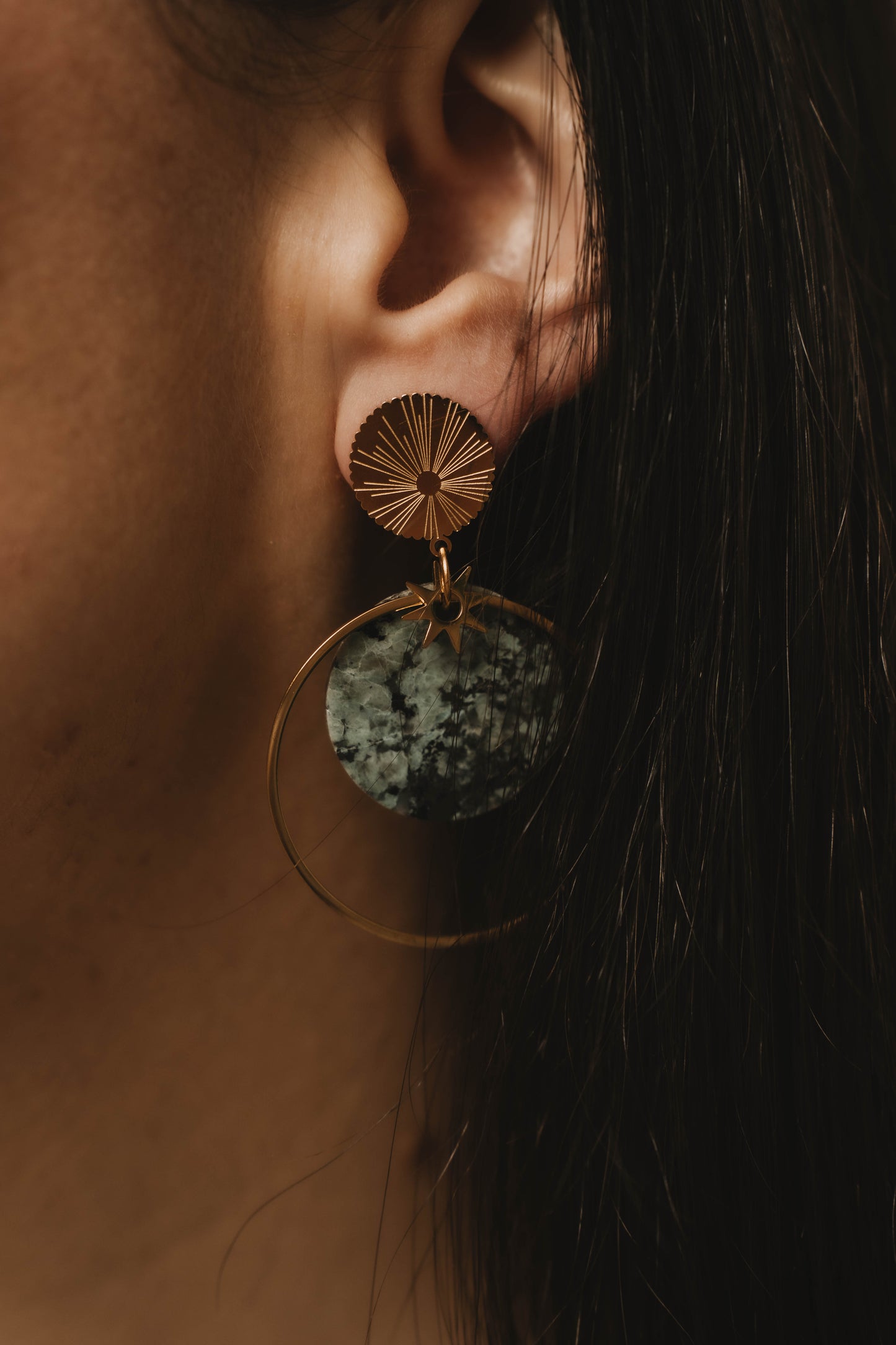 Barcelone | Boucles d'oreilles en acier inoxydable et pierre naturelle | Turquoise Africaine | Doré