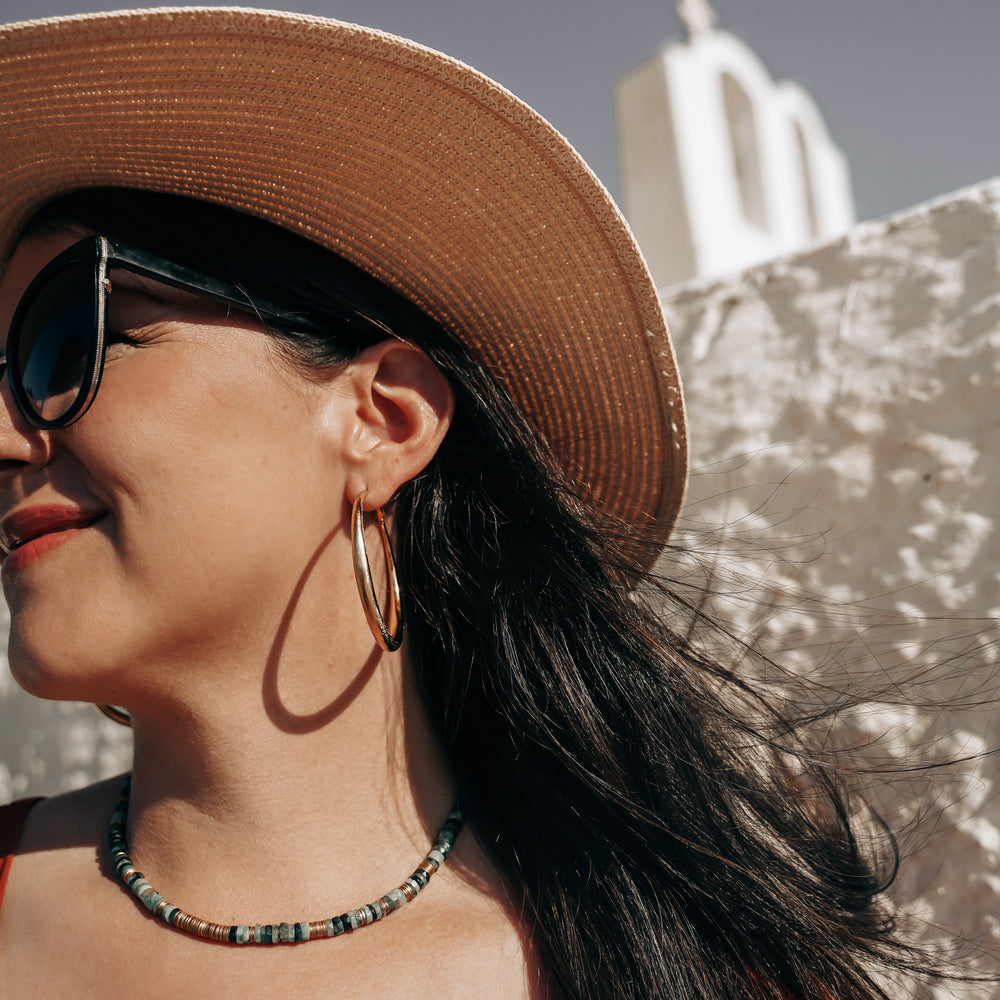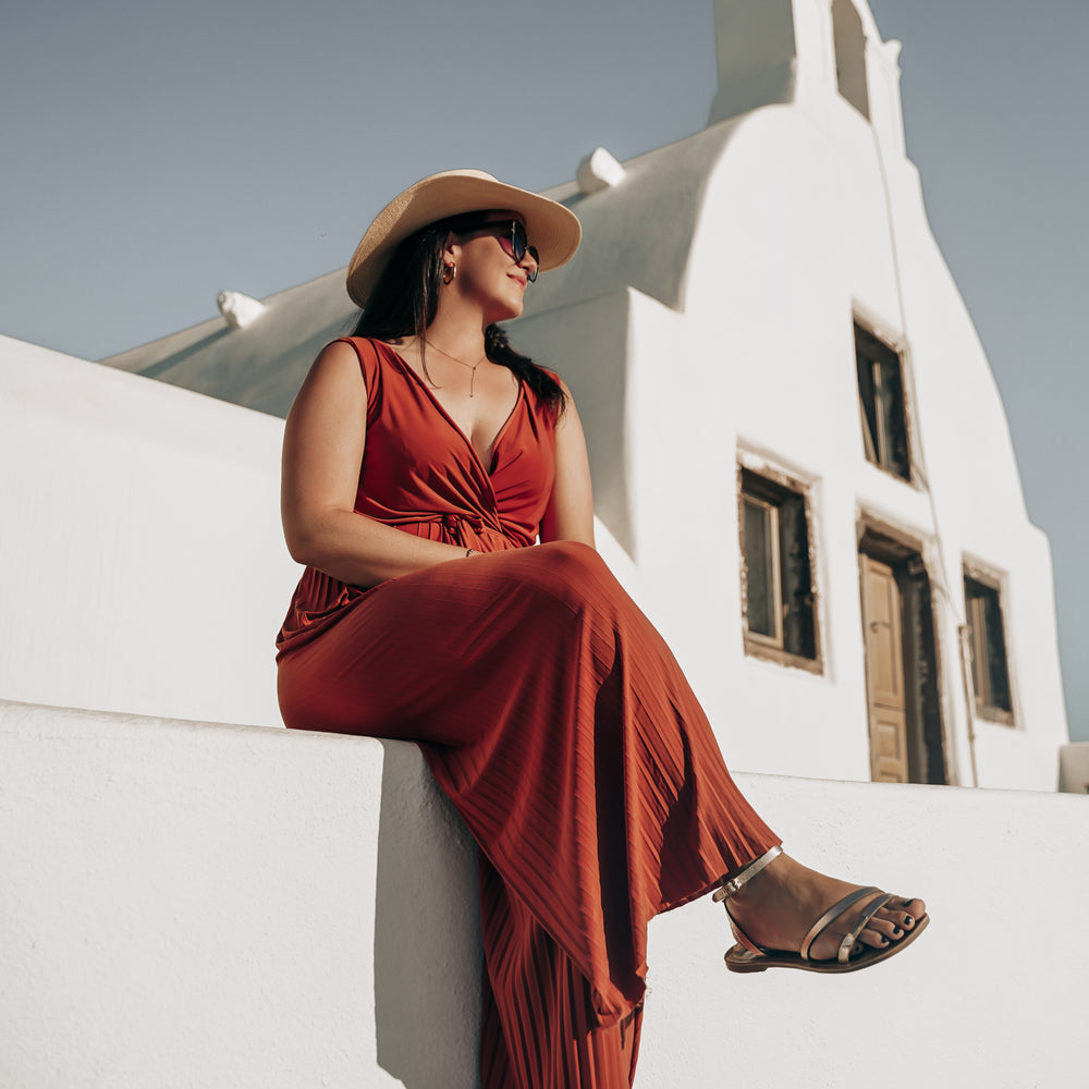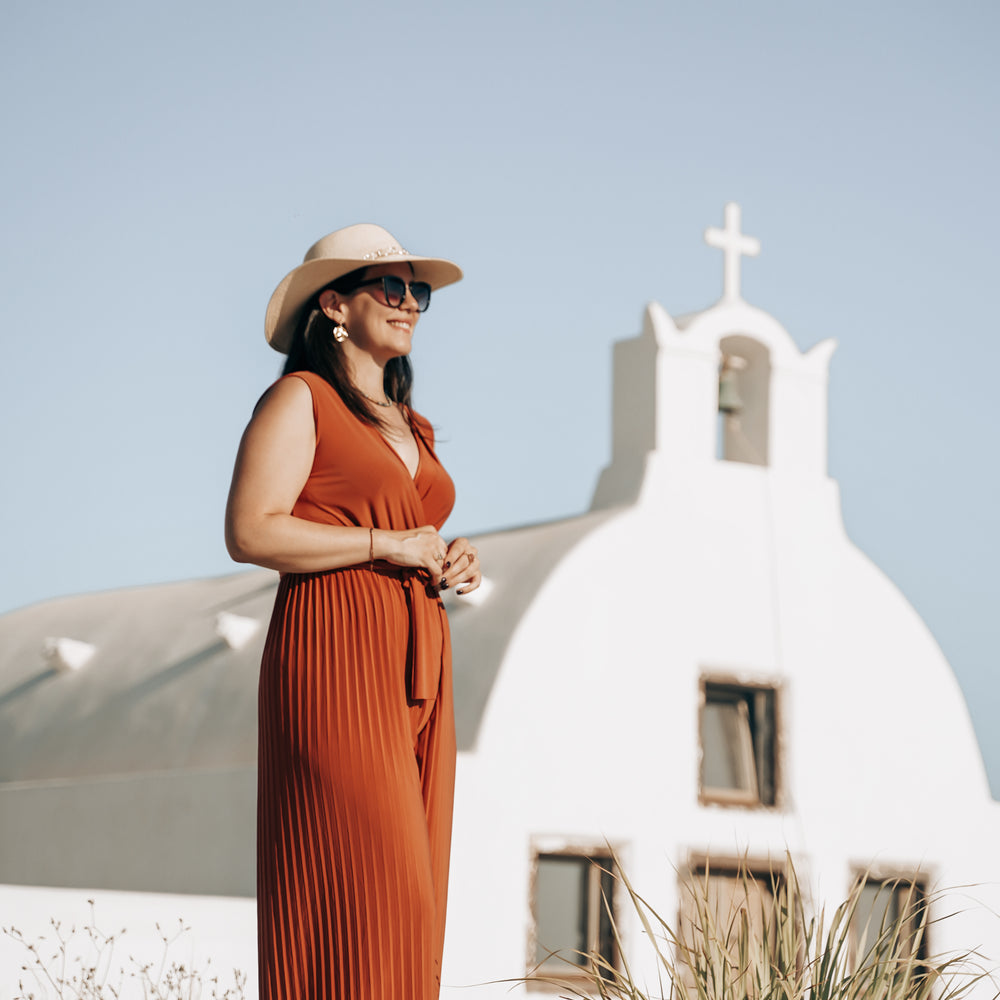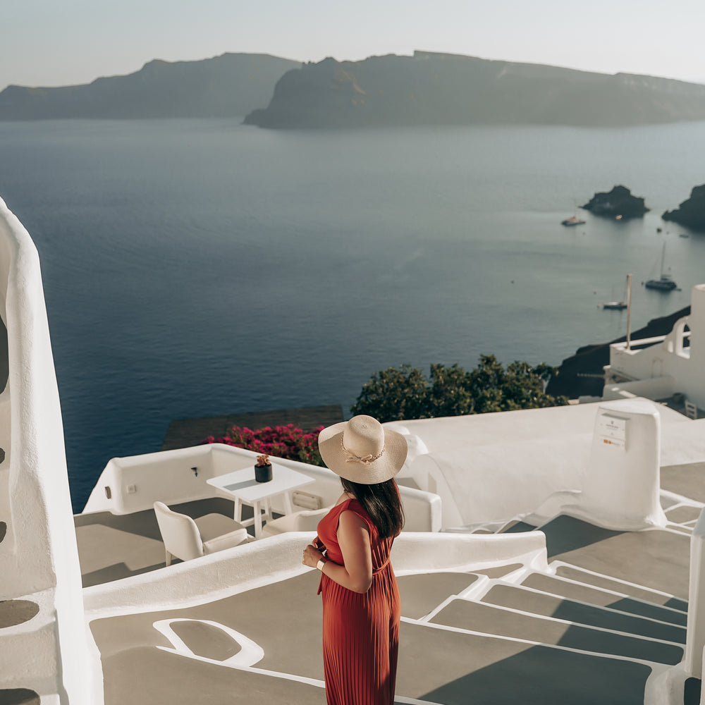 Née sous la lumière dorée d’Oïa, cette collection célèbre la beauté des fins de journée, quand le soleil caresse les murs blancs et teinte l’horizon de reflets ambrés.