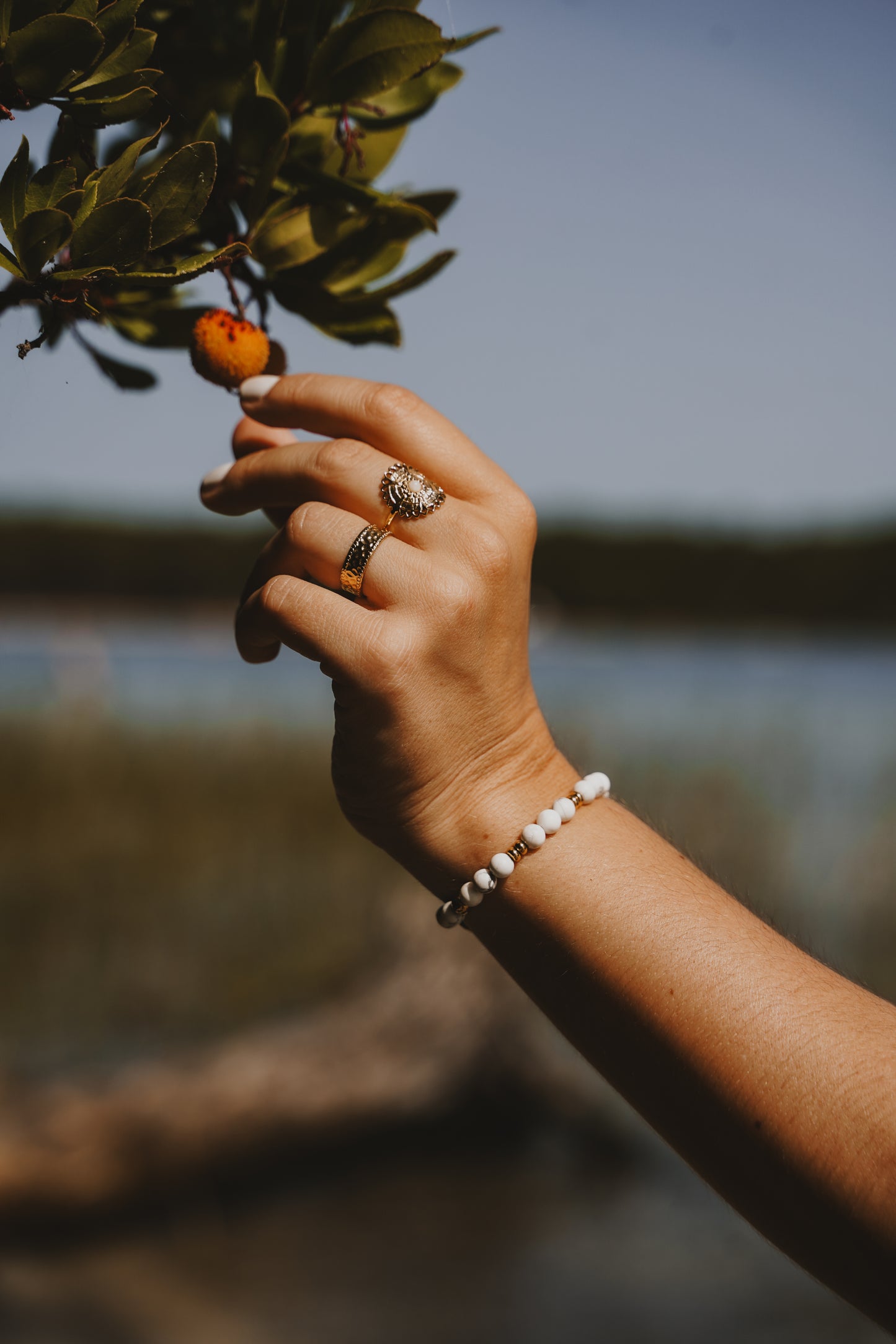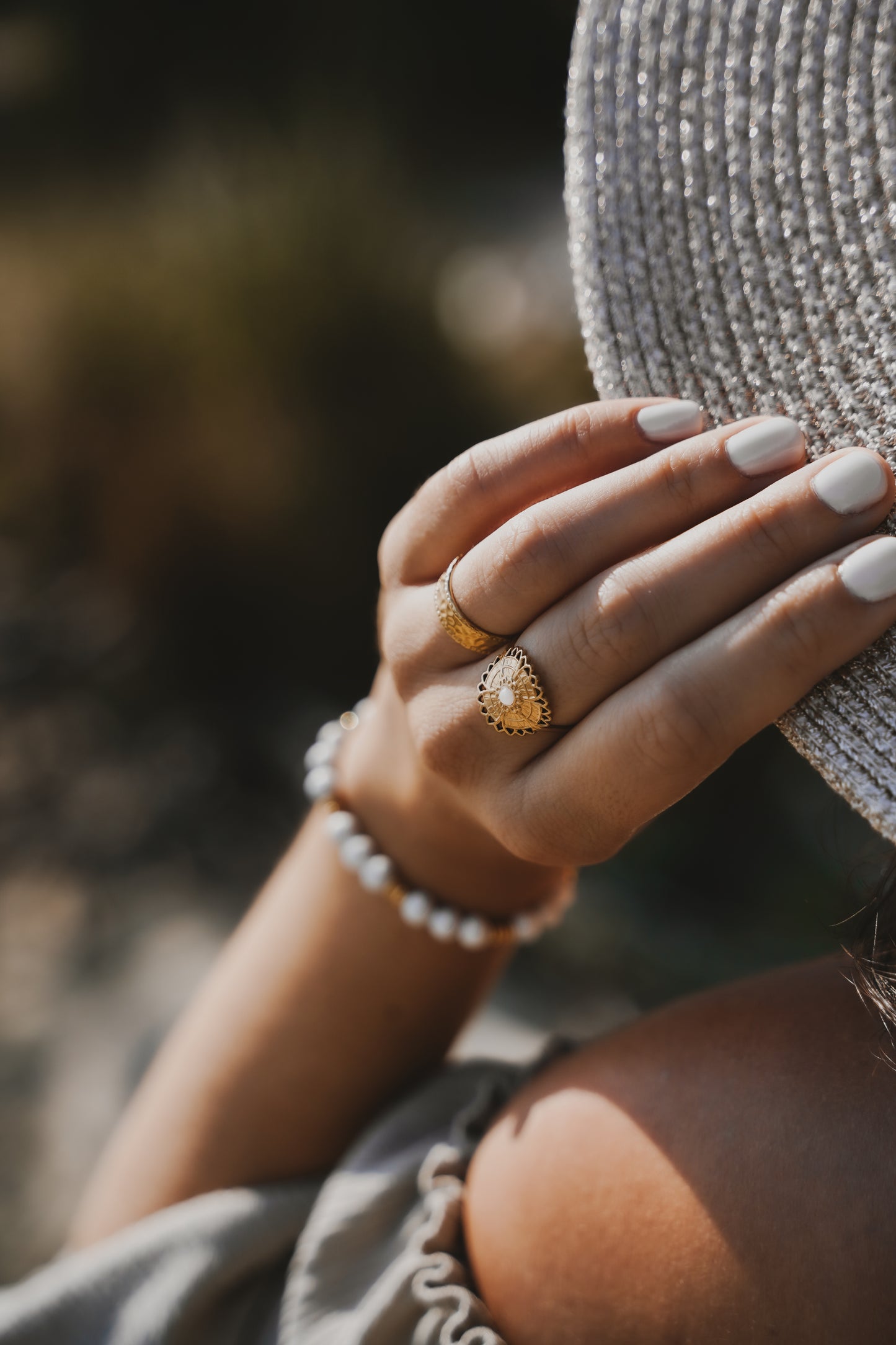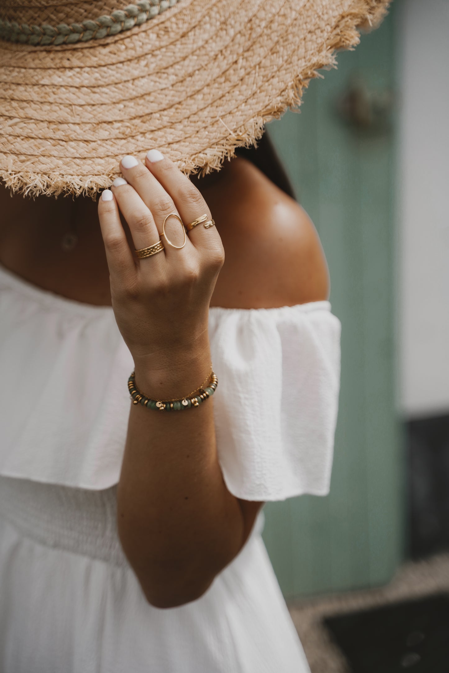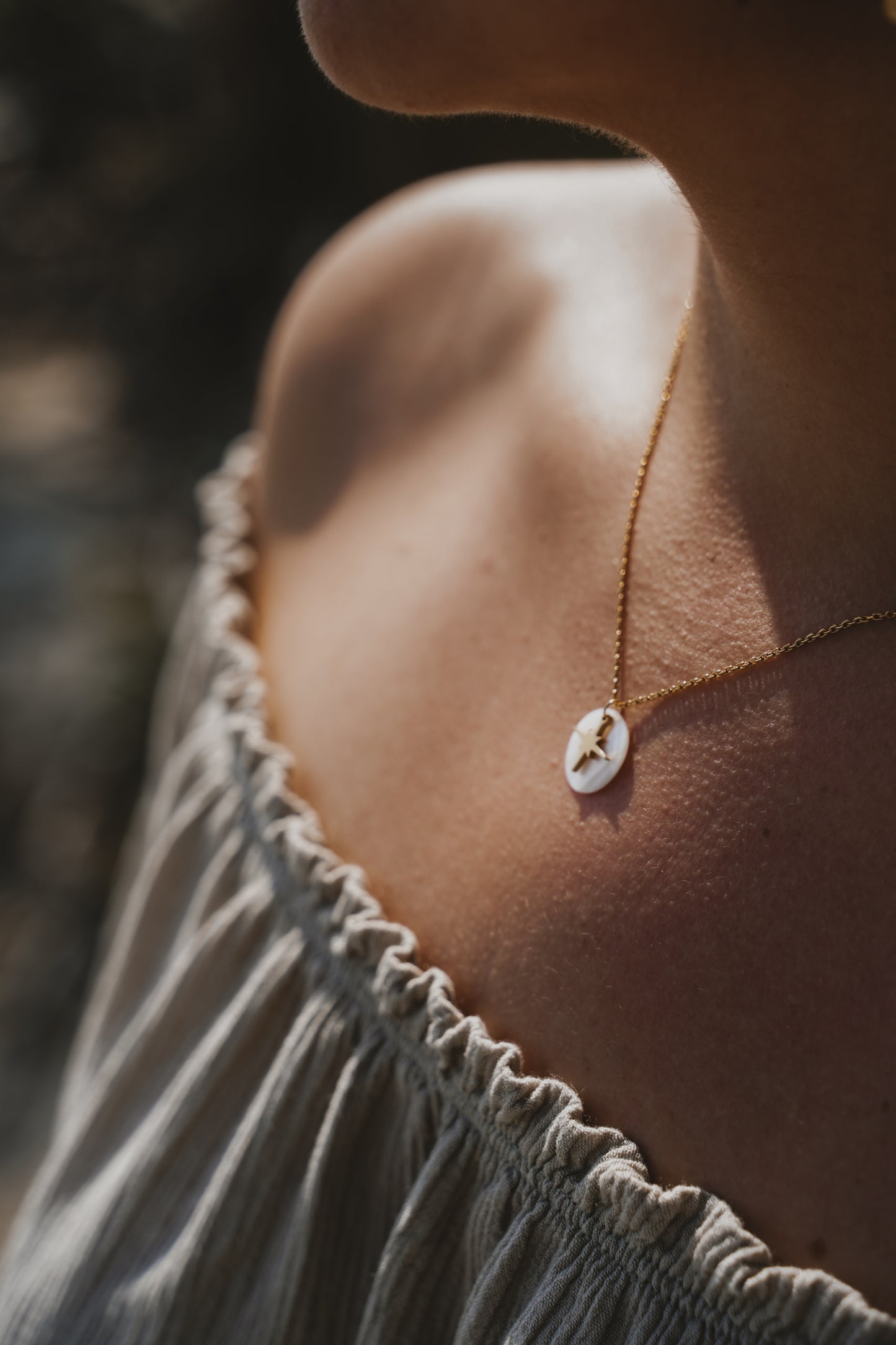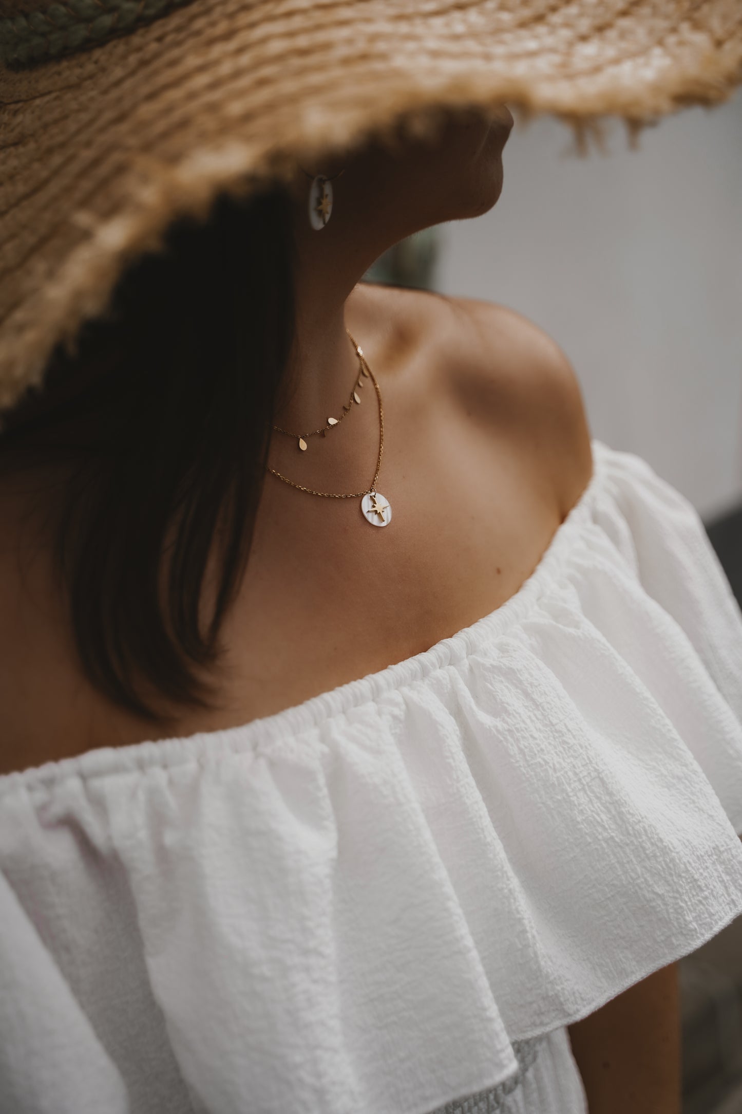 Inspirée par la beauté de l'île de Ré, cette collection de fin d'été joue avec des teintes de blanc et de vert sauge. Des bijoux en acier inoxydable, conçus pour mettre en valeur la peau hâlée, alliant fraîcheur et élégance naturelle.
